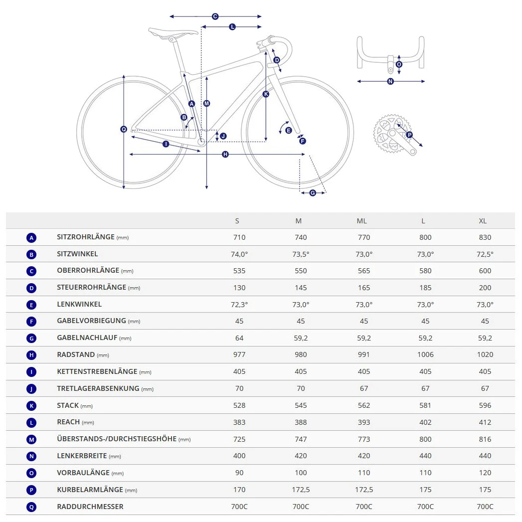 - – Een naar beneden aflopende bovenbuis creëert kleinere driehoeken voor en achter, voor een lichtere, stijvere fiets. Het vergemakkelijkt de perfecte pasvorm voor rijders van alle maten.